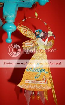 Maggie was having a Christmas card-making party, and I didn't want to haul my whole studio of supplies over to her house so I thought up a new version of a "lady" I could make as a holiday card. She would be laminated, have a tiny little waist I could tie a ribbon around, and have little dangling bead feet. So I did the design work in advance, went bead-shopping (I {heart} bead shopping!) and assembled them at Maggie's. I loved them! I made more!